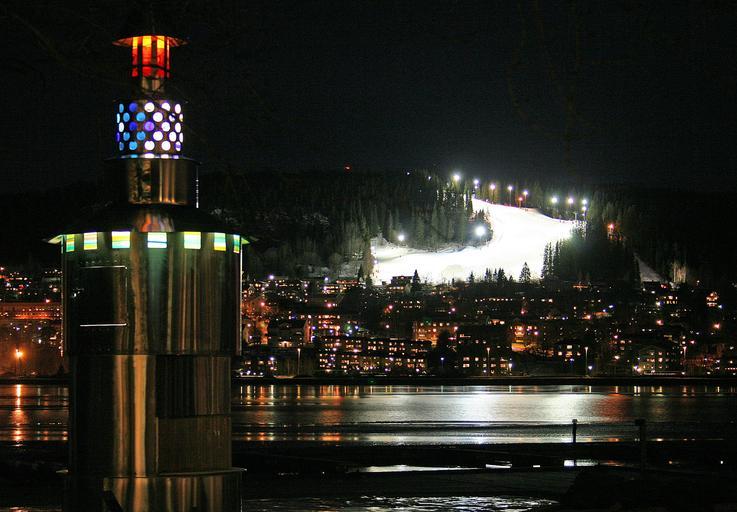 Keywords: frösön night slalombacke light night life city large water buildings