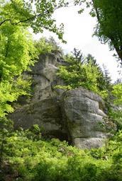 Keywords: Fraenkische Schweiz Oberes Puettlachtal 005.JPG Püttlachtal bei Pottenstein in der Fränkischen Schweiz own Janericloebe 2010-05 Püttlachtal Rock formations of Franconian Switzerland