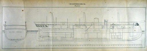Keywords: Fragata independencia perfil.jpg Plano del perfil de la fragata blindada Independencia Apuntamientos sobre la fragata blindada Independencia 1866 Aurelio García y García PD-old BAP Independencia ship 1866