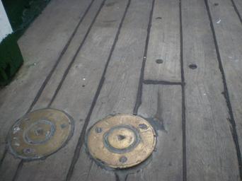 Keywords: FragataSarmiento049.JPG Buque Museo Fragata A R A Presidente Sarmiento amarrada en puerto Madero Buenos Aires Argentina Tapa de tubo de sonda Own 2008-03 Claudio Elias Presidente Sarmiento ship 1897
