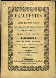 | Keywords: Fragmentos de algunas plantas de Filipinas... (1851).jpg es Antonio Llanos Aller 1806 - 1881 Fragmentos de algunas plantas de Filipinas no incluidas en la flora de las islas de la primera ni segunda edición Manila 1851 2014-11-14 own Aristeo555 other versions cc-by-sa-4 0 Uploaded with UploadWizard Public-domain-image com Uncategorized 2014 November 14 | ||||