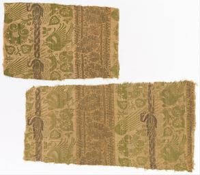 | Keywords: Fragments - Google Art Project (5492252).jpg 6938587 Unknown /collection/cooper-hewitt-national-design-museum/artwork/fragments-unknown/5492252/ 11494 author /collection/cooper-hewitt-national-design-museum/ Cooper-Hewitt National Design Museum 3644669 http //www cooperhewitt org/ /collection/cooper-hewitt-national-design-museum/artwork/fragments-unknown/5492252/ 1300 14th century Medium silk metallic threadsTechnique 2/1 twill patterned with plain weave ex-collection Francisco Miquel y BadÃa 5492252 False 1399 1902-1-329-a b http //collection cooperhewitt org/view/objects/asitem/id/11494 Gift of John Pierpont Morgan Fragments 1300 1400 14th century False 1 14285714285714 Object fragments-unknown Fragments f Fischbach Friedrich Die Wichtigsten Webe-Ornamente Bis Zum 19 Jahrhundert Wiesbaden 1901 Figure 12 Hewitt Eleanor Garnier No 280 in her notebook of the Morgan Collection 13th or 14th century Sicilian Lessing Julius Die Gewebe-Sammlung Des K Kunstgewerbemuseums Berlin Berlin 1900 Tafel 108-A Warp x Weft a 42 8 x 23 cm 16 7/8 x 9 1/16 in Warp x Weft b 29 x 19 5 cm 11 7/16 x 7 11/16 in Medium silk metallic threadsTechnique 2/1 twill patterned with plain weave ex-collection Francisco Miquel y BadÃa special url_id vAFC1Ahm7ykKpw PD-old-100 Google Art Project works by unknown artist Textiles in the Cooper “Hewitt Smithsonian Design Museum Google Art Project works in Cooper-Hewitt Smithsonian Design Museum 14th-century textiles |