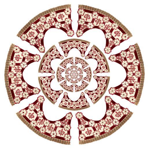 | Keywords: Framdel till tornerschabrak i Maria Eleonoras färger rött och vitt tillverkat för bröllopstorneringen 1620 - Livrustkammaren - 91558.tif LSH artwork Baltzar Dinet Hovskräddare Anders pärlstickare pärlstickare sv På en botten av vit taft är applicerade ca 65 mm breda röda sammetsremsor tagna på diagonalen i ett rutsystem Där remsorna korsar varandra är applicerad en dubbel blomma av sidenatdlas den undre röd och ca 180 mm i diameter den övre vit och ca 140 mm På varje ruta en stiliserad lilja ca 90 mm hög och 160 mm bred En rosett av ibland guldgalon och ibland av silvergalon i blommornas mitt saknas på fyra blommor och två liljor Applikationera kantade med 3 mm breda silverflätor <br/>Längs nedre kanten en 100 mm bredfrans av silver och brunt silke i ca 25 mm breda partier <br/>Mellanfoder och foder av svart linne i tuskaft En ca 270 mm bred styvnad längs nedre kanten På fodrets övre vänstra hörn ett ca 500 mm långt beige bomullsband i övre högra hörnet en ca 250 mm lång läderrem <br/>1654 finns dessa tolv tornertäcken i Livrustkammaren 1655 även halskapporna och 1671 riddarskörten Ett täcke och riddarskörten kasserades 1823 1850 finns de ej upptagna 1867 upptages två med anteckning från Gripsholm ett är upptaget tillsammans med en sadel 869 övriga återlämnas från Husgerådskammarens förråd på Gripsholm enl skrivelse från chefen för K Hovmarskalksämbetet 7 2 1912 original caption Framdel till tornerschabrak i Maria Eleonoras färger rött och vitt tillverkat för bröllopstorneringen 1620 <br/> Nyckelord Rött Blomdekor Blommor Gustav II Adolf och Maria Eleonoras bröllop 1620 taffeta Färg vit röd material sidentaft size mm 450 mitt size mm 850 kant size mm 1260 upptill size mm 1480 nedtill LRK Maria Eleonora av Sverige drottning 1599- Königsberg Trofast - hov och tass i kunglig tjänst 2010-2011 Livrustkammaren Trogna vänner - Kungliga hästar och hundar 2011-2012 Museiverket/Finlands nationalmuseum Maria Eleonora - Hjärtats drottning 2013 Livrustkammaren Maria Eleonora - Hjärtats drottning arb namn 2014-2015 Nyköpingshus place of origin original filename lm_dig8721 42653 inventory number LRK 6114 91558 CC-BY-SA Erik Lernestål <gallery caption Different images of same object > File Framdel till tornerschabrak i Maria Eleonoras färger rött och vitt tillverkat för bröllopstorneringen 1620 - Livrustkammaren - 91559 tif File Framdel till tornerschabrak i Maria Eleonoras färger rött och vitt tillverkat för bröllopstorneringen 1620 - Livrustkammaren - 91557 tif </gallery> Decor Floral designs Red Wedding of Gustav II Adolf and Maria Eleanor of Sweden Horse equipment Erik Lernestål Media contributed by LSH dim-with multiple size templates Media contributed by LSH unmatched creator Media contributed by LSH 2014-11 |