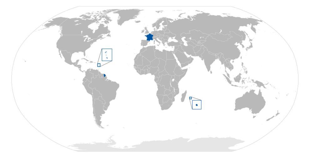 Keywords: France DOM map blank.svg Blank map of the French w Overseas department s File BlankMap-World6 svg 2010-01-24 Carport File France DOM map-fr png - French version File France DOM map-en png - English version File France DOM map-de png - German version World maps of Overseas France Maps needing South Sudan political boundaries |