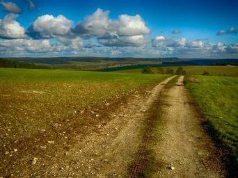Keywords: france landscape scenic farm fields sky clouds nature outside summer spring dirt road