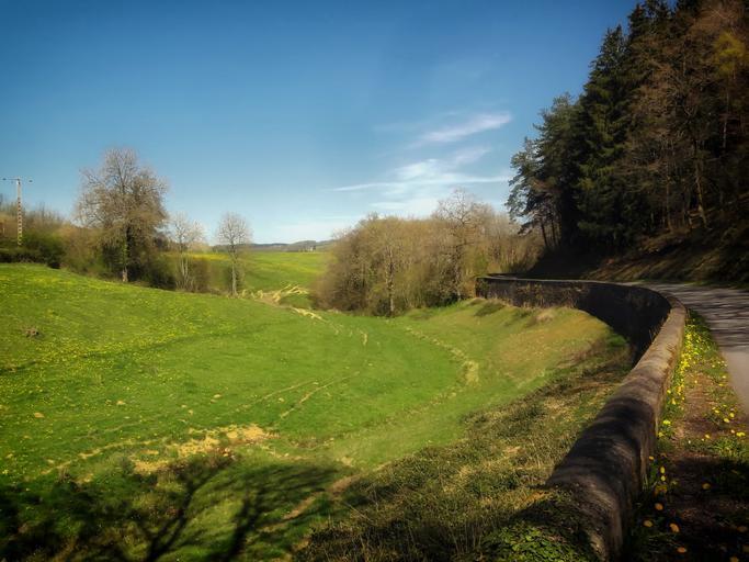 Keywords: france landscape scenic hills road dandelions grass field pasture meadow rural country countryside nature outside trees