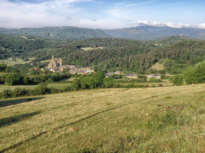 Keywords: france landscape scenic mountains sky clouds village church valley architecture field nature outside summer spring countryside
