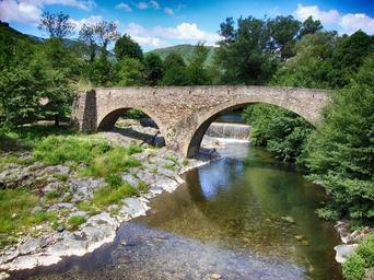 Keywords: france landscape scenic sky clouds trees stream water reflections summer spring bridge architecture arched country countryside rural