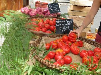 Keywords: france market tomatoes onions vegetables food french europe stall produce red