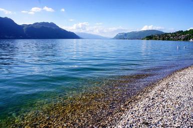 Keywords: france mountains sky clouds landscape scenic lake water reflections beach stones rocks shoreline shore nature outside