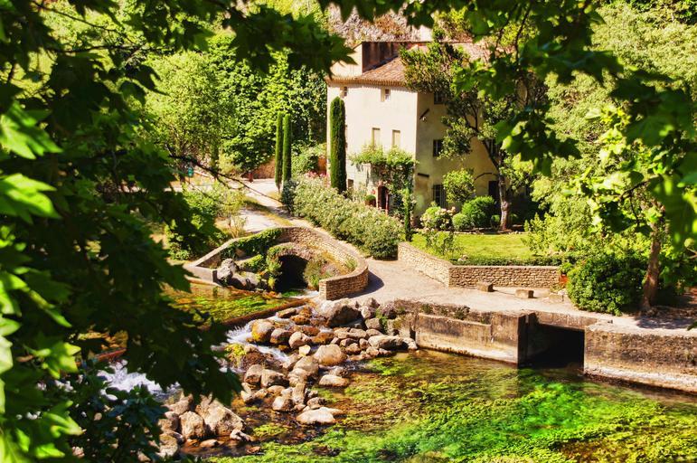 Keywords: france provence river home bridge nature mediterranean building leaves