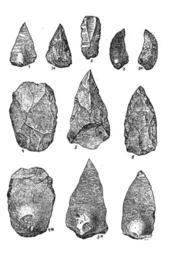 | Keywords: France stone tools.jpg Слика 25 К емена о уђа из д угога мустије скога века палеолитске пе иоде повађена сва из ста их наноса азних ека у Ф анцуској Сва сем ножића под 2 п едстављена су с го ње и са доње ст ане Доња им је ст ана обично глатка; на њој се види ожиљак и плик од уда ца 4а 5а 6а 1 и 3 Го ња им је ст ана г убо ок есана а често 4 6 1а по ободу ситно етуши ана да би се лакше могло њоме сећи П едмет под 3 3а могао је служити као ст угало они шиљати за копља а п едмет под 4 највише се п иближује п вобитној алатки Project Rastko Kameno doba |