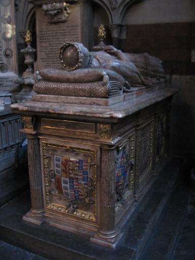 | Keywords: Frances Brandon's tomb.jpg Marble tomb of Frances Brandon Duchess of Suffolk in Westminster Abbey St Edmunds Chapel erected four years after her death by her second husband Adrian Stokes She is depicted wearing the ermine mantle and crown of a duchess and holds a book of prayer in her hands The effigy is in good condition although covered in incised names and the nose had to be mended at one point own 2011-01-21 own work Cc-zero Frances Brandon | ||||