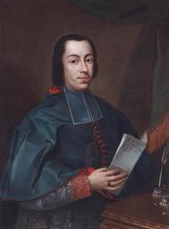 | Keywords: Francesco Agostino della Chiesa, Bishop of Vigevano (born 1717) by Davide Loreti.jpg title Francesco Agostino della Chiesa Bishop of Vigevano born 1717 oil on canvas 97 5 x 72 cm Davide Loreti signature lower right FRANCESCO AGOSTINO DELLA CHIESA DI SINSAN VESCOVO DI VIGEVANO FU ELLE MONSINIERE DIS MTA CONSACRATO / VESCOVO IN ROMA LI XIII FEBRARIO 1753 NATO LI XXVI AGOSTO 1717 / FIGLIO DEL SIGNOR MARC DI RODDI DON CARLO GUISEPPE / CAVALIERE GRADNE CROCE DEL ORDINE MILITARE SE STI MALIRISIO E LAZARO E PRIMO GENTILHOMO DELLA CAMERA DI MAESTA IL RE DI SARDENGNA / E DELLA MARCH DI RODDI NATA MOROLISSA text verso http //www sothebys com/en/catalogues/ecatalogue html/2008/old-master-paintings-sale-l08031 /r /en/ecat fhtml L08031 html+r m /en/ecat lot L08031 html/193/ Sotheby's Davide Loreti 1753 PD-Art Davide Loreti 1753 Images from Sotheby's Francesco Agostino Dalla Chiesa |