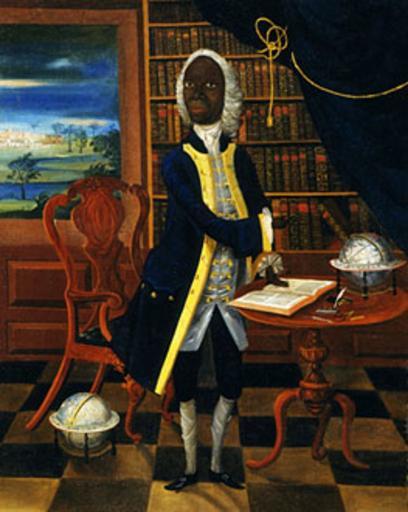 Keywords: Francis Williams.jpg Painting of Francis Williams a jamaican writer and teacher Location is a library in Spansih Town Jamaica ca 1740 author PD-old People of Jamaica