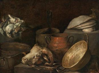 | Keywords: Francisco barranco-bodegon.jpg es Bodegón 60 x 90 8 cm Christie's Nueva York 27 de enero de 2010 en Still Life with a Ram's Head Game an Earthenware Jug and Other Objects in a Kitchen Interior by Francisco Barranco c 1640-1650 oil on canvas 67 9 by 90 2 cm circa 1640 1650 Sotheby's Francisco Barranco PD-old-100 other versions Still life paintings from Spain Francisco Barranco Images from Sotheby's Pottery in Spanish painting | ||||