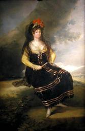 | Keywords: Francisco de Goya y Lucientes 106.jpg Artwork en The Countess of Fernán Núñez oil canvas en x cm en Madrid private collection This is a fashionable version of of the traditional costume of the majas A mantilla and a black fringed dress This was the style of dress of which aristocratic ladies even the Queen herself liked to be painted as an expression of their Spanish anti-French attitude Image self taken at Goya exhibition in the Kunsthistorisches Museum in Vienna October 2005-January 2006 en around 1803 Creator Francisco de Goya y Lucientes PD-old-100 Other versions 100px Clothing of Spain House of Fernán Núñez Fernán Núñez Mantilla in art Portrait paintings of women of Spain in national costumes Countess of Fernán Núñez Goya 19th-century promenade portraits Spanish promenade portraits Fringes |