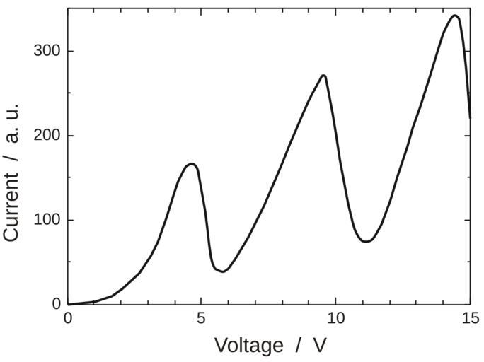 Keywords: Franck-Hertz en.svg Dependence of the anode current upon the voltage in the 1914 Franck-Hertz experiment The tube temperature was about 115 C <ref> cite journal J Franck Hertz G à ber Zusammenstöße zwischen Elektronen und Molekülen des Quecksilberdampfes und die Ionisierungsspannung desselben Verhandlungen der Deutschen Physikalischen Gesellschaft 1914 16 457 “467 A translation of this paper is given in cite book Boorse Henry A Motz Lloyd The World of the Atom 1 46 The Quantum Theory is Tested 766-778 Basic Books 1966 534667 </ref> Wikipedia contributor Ahellwig Redrawing of a figure from the original 1914 paper of Franck and Hertz Measured data points in the original graph have been removed See cite web Auszüge aus der Originalarbeit von Franck und Hertz 1914 http //leifi physik uni-muenchen de/web_ph12/originalarbeiten/franckhertz/original htm http //web archive org/web/20091130224501/http //leifi physik uni-muenchen de/web_ph12/originalarbeiten/franckhertz/original htm 2009-11-30 Franck also used this figure in his Nobel Lecture which is available in English translation at cite book Nobel Lectures Physics 1922-1941 Elsevier Transformation of Kinetic Energy of Free Electrons into Excitation Energy of Atoms by Impacts Franck James 1965 http //www nobelprize org/nobel_prizes/physics/laureates/1925/franck-lecture pdf 2006 reflist Experiment of Franck and Hertz |