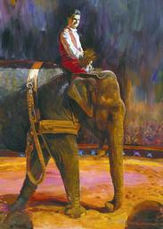 | Keywords: switzerland rapperswil circus-knie circusknie circus family elephant performance oilpainting artist-painter artistpainter hubertine-heijermans hubertineheijermans piste public circus-act circusact suisse 1999 on.canvas oncanvas national.circus.knie nationalcircusknie franco.knie francoknie der.schweiz derschweiz canton.san.gallen cantonsangallen headquarters.rapperswil headquartersrapperswil Rajah imitates the work in the forest. The elephant carries a saddle with a leather loop to pull heavy tree trunks, a perfect performance and an imitation of how work in the Indian forest was done. But today it has become doubtful that elephants are allowed to perform, as they became rare and are now protected. It is because they become very old that the law creates a problem for Franco Knie. And Rajah deserves to be able to go on and have audiences applaud. By the way, the equipment, saddle and loops are authentic. www.flickr.com/photos/tine-heijermans/27998143504/in/date... En français: Rajah imite le travail exécuté dans la forêt Indienne. Une selle particulière avec des boucles solides sert à tirer des troncs d'arbres et l'équipement est en effet authentique. Pourtant l'exploit d'éléphants est devenu aujourd'hui un tabou à cause de la protec-tion d'animaux d'origine sauvage. Mais des éléphants peuvent atteindre un grand age et ceci est la cause, que cette loi implique des éléphants depuis longtemps domestiqués. Rajah imitates the work in the forest. The elephant carries a saddle with a leather loop to pull heavy tree trunks, a perfect performance and an imitation of how work in the Indian forest was done. But today it has become doubtful that elephants are allowed to perform, as they became rare and are now protected. It is because they become very old that the law creates a problem for Franco Knie. And Rajah deserves to be able to go on and have audiences applaud. By the way, the equipment, saddle and loops are authentic. www.flickr.com/photos/tine-heijermans/27998143504/in/date... En français: Rajah imite le travail exécuté dans la forêt Indienne. Une selle particulière avec des boucles solides sert à tirer des troncs d'arbres et l'équipement est en effet authentique. Pourtant l'exploit d'éléphants est devenu aujourd'hui un tabou à cause de la protec-tion d'animaux d'origine sauvage. Mais des éléphants peuvent atteindre un grand age et ceci est la cause, que cette loi implique des éléphants depuis longtemps domestiqués. |