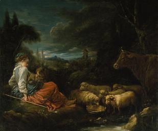| Keywords: François Boucher - Pastoral - Walters 37391.jpg This composition was one of Boucher's earliest successes At least two versions exist and it also became known through an etching by Louis-Michel Halbou The young Boucher spent three years in Italy on a prestigious scholarship sponsored by the French Academy Paintings like this one show the influence of 16th-century Venetian artists Even the critic Denis Diderot who later become Boucher's most outspoken enemy had only praise for these early Italianate works which he admired for their fresh colors and vigorous brushwork ca 1730 Oil on canvas framed cm 63 5 71 1 8 9 accession number 37 391 14735 Henry Walters Baltimore date and mode of acquisition unknown Walters Art Museum Henry Walters Acquired by Henry Walters place of origin France Walters Art Museum license 2D Paintings by François Boucher Media contributed by the Walters Art Museum needs category review French paintings in the Walters Art Museum 1730s paintings from France Paintings of shepherds |
