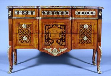 | Keywords: François-Gaspard Teuné - Commode with Urns and Flowers - Walters 6565.jpg This commode bears the stamp of François Gaspard Teuné who became a master ébéniste cabinetmaker in 1766 and often received commissions from the count of Artois brother of King Louis XVI In style the piece represents the transition from Rococo to Neoclassicism The front is divided into a central section inlaid with an urn and two lateral sections with a trellis pattern known as marqueterie à la Reine ca 1766 sycamore tulipwood other woods bronze-gilt brecciated marble cm 86 4 125 accession number 65 65 473 Parke-Bernet Galleries New York Walters Art Museum 1970 by purchase Museum purchase 1970 Signature F G Teune Going for Baroque The Walters Art Gallery Baltimore 1995-1996 place of origin France Walters Art Museum license Commodes Marquetry 18th-century furniture Furniture in the Walters Art Museum François-Gaspard Teuné |