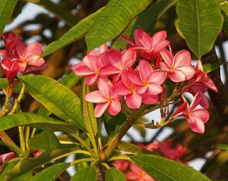 Keywords: frangipani flowers pink nature tropical blossoms blooms floral fauna garden bright color fresh botanical botany leaves florida