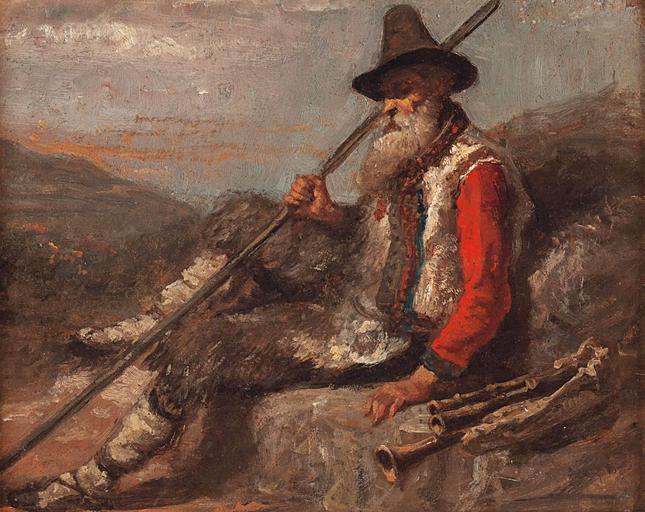 | Keywords: Frank Buchser - Sitzender alter Hirte mit Sackpfeife in den Alpen.jpg Artwork Creator Frank Buchser century 19 oil canvas circa cm 32 38 object history credit line accession number http //www dorotheum com/auktionen/auktion-10575-osterauktion-kunst-und-antiquitaten html Dorotheum Salzburg 15 04 2014 Lot Nr 144 PD-old-100 Frank Buchser 19th-century oil paintings of sitting men at full length Bagpipers in art Images from Dorotheum Ž Paintings of men sitting on the ground outdoors Pastoral |