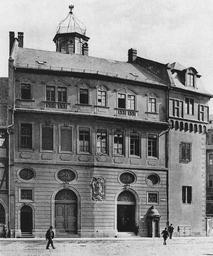 | Keywords: Frankfurt Am Main-Fay-BADAFAMNDN-Reprint-069-Der Roemer - Eingang vom Paulsplatz.jpg Artwork Creator Carl Friedrich Fay The entrance of the Römer at the Paulsplatz Paul's Square Lersner sagt in seiner Frankfurter Chronik I 264 žAn Stelle des Römertheils nach dem Paulsplatz zu hat früher der goldene Schwan gestanden Der goldene Schwan wird 1322 zuerst als goldener Frosch 1380 als goldener Schwan erwähnt Im Jahre 1405 wurde er von dem Rathe sammt dem Römer käuflich erworben und umgebaut; aus dieser Zeit stammt die Halle und die Wachtstube In den Jahren 1561 “63 erhielt der goldene Schwan einen neuen Dachstuhl und eine Steinfacade statt der bisherigen Fachwerkfacade nach dem Römerhöfchen zu und auch die Wachtstube wurde mit grösserenFenstern versehen Die heutige Facade nach dem Paulsplatz ebenso die Kuppel erhielt der goldene Schwan im Jahre 1731 Sie wurde von Jacob Samhammer aus Hanau der in den Jahren 1727 bis 1745 hiesiger Stadtbaumeister war und auch die Hauptwache erbaute in massiven Steinen errichtet In die Halle führen zwei rundbogige Thore über denen ovale Fenster angebracht sind Neben dem linken Thore befindet eine Thüre als Einlass zur Bürgermeistertreppe neben dem rechten Thore ein in rothem Sandstein gearbeitetes Schilderhaus Zwischen beiden Thoren ist der von Schwarzburger ausgeführte Wappenstein mit dem Frankfurter Adler Das erste Obergeschoss enthält das Bürgermeisteramt das zweite verschiedene Bureaux Im Erdgeschoss liegt die im Winkel fortgesetzte zweischiffige Römerhalle mit rippenlosen Kreuzgewölben überdeckt; sie hat vier freistehende Säulen mit runder Basis und achteckigem Sockel die Gurtbogen welche die Decke in Dreiecke zerlegen wachsen aus den runden Schatten der Pfeiler heraus Die Wandpfeiler haben den Sockel der freistehenden Säulen einen cylindrischen Schaft und ein Kapitäl Das Haus žgoldner Schwan ist auf der einen Seite von dem zum Haus žFrauenrode gehörigen Archivithurm auf der andern Seite vom Hause žWanebach flankirt ca 1900 technique print dry plate object history credit line accession number Carl Friedrich Fay Carl Friedrich Mylius Franz Rittweger Fritz Rupp Bilder aus dem alten Frankfurt am Main Nach der Natur Reprint der Auflage Carl Friedrich Fay Frankfurt am Main 1896 “1911 Michael Imhof Verlag GmbH Co KG Petersberg 2006 ISBN 3-86568-118-2 PD-old Bilder aus dem alten Frankfurt am Main Nach der Natur Reprint 2006 Bethmannstraße Paulsplatz Frankfurt Haus Frauenrode Haus zum Goldenen Schwan 1900 in Frankfurt am Main 1900 |
