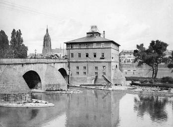| Keywords: Frankfurt Am Main-Fay-BADAFAMNDN-Heft 26-Nr 306-1911-Bruecke mit Brueckenmuehle.jpg Follows de Heft 26 Tafel 306 / Titel auf der Tafel Brücke mit Brückenmühle / Originalbeschreibung Zu den Denkmälern der alten Reichsstadt die durch Geschichte und Sage verklärt bestimmt sind für ewige Zeiten im Gedächtnis der Menschen fortzuleben gehört die žrote Mainbrücke Aus Mainsandstein errichtet auf massiven Pfeilern mit kräftigen Vorder- und Hinterköpfen die zwischen dem 5 und 7 Bogen eine architektonisch recht wirksame Ausbuchtung erfahren haben überspannt sie in halbkreisförmigen Bogen aus Quaderschichten den ruhig dahinströmenden Flusslauf Ueber das Alter sind wir nur schlecht unterrichtet Die erste urkundliche Erwähnung der alten Brücke geschieht im Jahre 1222 doch ist mit Sicherheit anzunehmen dass die Erbauung einer Holzbrücke in weit frühere Zeit hinaufreicht Mau kann sich kaum vorstellen dass die ansehnliche Niederlassung um den žSaalhoeff das alte Palatium Ludwigs des Frommen nicht schon sehr bald mit den ausgedehnten Wohnsitzen der Ministerialen in der Sachsenhäuser Gemarkung in direkter Verbindung gestanden hat Allein die Unsolidität des Materials und die rohe Naturgewalt worunter die Menschheit des Mittelalters in ganz anderer Weise zu leiden hatte als wir in unseren Tagen zwangen zu dem kostspieligen Ersatzbau in Stein Doch brachten Mangel an Mittel wie auch die Schwierigkeit geeignete Arbeitskräfte zu finden das monumentale Werk nur langsam voran Man fundierte die Pfeiler unmittelbar mit Hülfe von eichenen Schwellenrosten auf die Flusssohle die nicht etwa wie irrtümlich angenommen wird aus Tonschiefer sondern aus blauem Cyrenenmergel besteht der bei der verstärkten Strömung zwischen den Pfeilern den wachsenden Auskalkungen der Sohle nicht genügenden Widerstand entgegensetzt So wird denn im Laufe des 13 und 14 Jahrhunderts wiederholt von ausgeführten Steinarbeiten an Pfeilern und Schwibbogen berichtet Auch für König Heinrich den Sohn Friedrichs II bildete die Erhaltung der Brücke im Interesse des Reiches einen Gegenstand schwerer Sorge Der aus politischen Gründen vor allem den Städten wohlgesinnte junge Fürst verlieh im Jahre 1235 ein Privilegium zur halben Nutzung der Münze und zum Bezug des zur Reparatur der Brücke nötigen Holzes aus dem Reichswalde Auf das höchste bedroht muss aber die Erhaltung der Brücke um das Jahr 1300 gewesen sein Anders hat es keinen Sinn dass fünfzehn italienische Bischöfe einen Ablass für jene Gläubigen gewähren die zum Bau der vom Hochwasser zerstörten Pfeiler beitrugen Die Brückenbahn bestand zu jener Zeit zum grössten Teil aus Holz und gab dem Bauwerk noch nicht durch die eigene Schwere der gewaltigen Schwibbogen eine Stabilität die allen Unbilden der Witterung bis zum heutigen Tage getrotzt und entgegen den gemachten Einwänden auch für absehbare Zukunft noch trotzen würde Immerhin mag die Brücke im Jahre 1405 wie die Abbildung von dem Schreiber eines Bedebuches zeigt das heutige Aussehen gehabt haben Wenn dennoch aus dem Jahre 1419 berichtet wird dass man an dem letzten Pfeiler gearbeitet habe damit mam fernerhin ždes kostlichen buwes mit holczwercken nit bedarff sondern balken druber leget und druff brückendele so handelt es sich hier um die Beseitigung eines Zustandes den man im Hinblick auf unruhige Zeiten belassen hatte um gegebenen Falles ohne weitere Schwierigkeiten die Verbindung der beiden Flussufer aufzuheben Einen gewissen Schutz gewährte immer noch der über zwei Oeffnungen belassene Brückenbelag aus Bohlen der erst Ende des 16 Jahrhunderts durch Bogen am Sandstein ersetzt wurde Und böse Zeiten zogen für das ehrwürdige Denkmal herauf Im Jahre 1427 sah sich der Rat der freien Reichsstadt genötigt aus Furcht vor den wilden Horden der Hussiten die Bogen der Brücke mit schweren Balken versperren zu lassen Den Einspruch des in seinen Fluss- und Hoheitsrechten sich beschränkt glaubenden Erzbischhofs von Mainz nahm man leicht Etwa 100 Jahre später aber während der Bewegung des Bauernaufstandes der auch in das Maintal hinüber gegriffen hatte pflanzte die ärmere Bevölkerung der Stadt die Fahne der Empörung auf der Brücke auf ohne dass es jedoch zu ernsthafteren Zusammenstössen gekommen war Schlimmer erging es dem Bauwerk im schmalkaldischen Kriege Als das Protestantenheer zur Belagerung der damals in kaiserlichem Besitz sich befindenden Reichsstadt schritt hatte man alle Vorkehrungen zum Schutze des unentbehrlichen Verkehrsweges getroffen Grosse Leinentücher waren auf der Brücke gespannt und die Mühle selbst mit grossen Wollsäcken verstopft um sie während der Zeit der Bedrängnisse in Gang zu halten Der Hauptanschlag zur Zerstörung der Brücke vermittels schweren Geschützes vereitelte der Abschluss des Passauer Vertrages und der damit verbundene Abzug eines Teiles der Belagerungstruppen Kaum weniger ernst war die Lage der Brücke im dreissigjährigen Kriege Auf der Fahrbahn selbst kam es zu heftigem Kampfe und es muss als ein Wunder angesehen werden dass bei dem Geschützfeuer von Ufer zu Ufer wobei 26 Häuser in Asche gelegt wurden die Brücke selbst kaum wesentlichen Schaden erlitt Allein an dem Kruzifix seien wie die Ueberlieferung will noch heute die Spuren von Schwedenkugeln sichtbar Im siebenjährigen Kriege wie im Befreiungskriege hat ein günstiger Stern über der Stadt gewaltet und grössere Verluste ferngehalten Im Sturmjahre 1848 sah die Brücke die letzten kriegerischen Ereignisse die aber Spuren irgendwelcher Art an dem Denkmal nicht hinterlassen haben <br>Wie in Kriegszeiten so stand auch in den Jahren des Friedens die alte Mainbrücke im Mittelpunkt des Interessens der Bewohner Ein gewaltiger Menschenstrom zog jahraus jahrein auf uralten Handelswegen über die Brücke die zur Lebensader des Rhein- und Main-Gaues geworden war Durch besondere Gesetze geschützt bedrohte man einen jeden der auf der Brücke Streit anfing mit dem Abhauen der rechten Hand