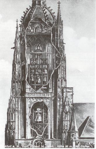 Keywords: Frankfurt Dom Glockenböden.jpg Frankfurt am Main Germany de Schnittbild des Domturmes mit den Glockenböden Anonyme Postkarte um 1900 Urheberrechtliche Ansprüche dürften aufgrund des Alters nicht mehr bestehen PD-Art Architectural sketches Church sections Spire of Kaiserdom St Bartholomäus 1899 in Frankfurt am Main Plans of Frankfurt Cathedral Kaiserdom St Bartholomäus in the 19th century Artworks missing infobox template |