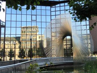 Keywords: frankfurt germany city buildings walkway entrance sculpture architecture cities urban trees outside