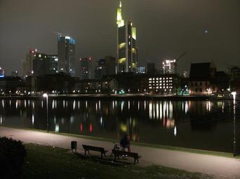 Keywords: frankfurt germany city cities water river bay reflections skyscrapers buildings architecture outside lights glow beautiful