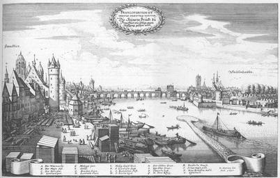 | Keywords: Frankfurt Merian 1646.jpg Alten Brücke in Frankfurt am Main Blick nach Osten Im Vordergrund links der Weinmarkt die beiden Hafenkräne und das Leonhardstor Siehe die Legende unten für die von Merian im Bild verzeichneten Buchstaben View of Frankfurt am Main and its Old Bridge Wine market and St Leonard's Gate in the foreground left See legend below for Merian's annotations capital letters in the picture 1646 1646 Creator Matthäus Merian der Ältere / the Elder Legende wikitable - - A Weinmarkt Wine market - B Der Main Main river - C Das Fahrtor Fahrtor city gate near Römerberg - D Leonhardstor St Leonard's Gate - E Metzgertor Butcher's Gate - F Spital Hospital - G Altstädter Brückenturm Gate tower on northern bridgehead - H Leonhardsturm Gate tower of St Leonard's Gate - I Heiliggeistkirche Abriss 1840 Holy Spirit church demolished in 1840 - K Stiftskirche St Leonhard St Leonard collegiate church - L Stiftskirche St Bartholomäus Kaiserdom St Bartholomew's collegiate church Imperial Cathedral - M Nikolaikirche St Nicholas' church - N Unterer Kran lower crane - O Oberer Kran upper crane - P Cleeischer Hof Deutschordenskommende Clee court aristocratic palace - Q Dreikönigskirche Three Magi church - R Deutschordenskirche Church of the Teutonic Order - S Schaumaintor Western Sachsenhausen city gate - T Neue Brückenmühle New mill on the bridge - V Offenbach Offenbach PD-old Engravings by Matthäus Merian Alte Brücke Frankfurt am Main Stone arch bridges in art Leonhardskirche Frankfurt Frankfurt-Altstadt Frankfurt-Sachsenhausen Main in Frankfurt am Main Dreikönigskirche Frankfurt 1646 in Frankfurt am Main 1646 |