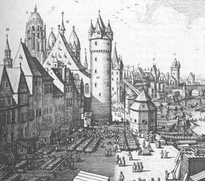 | Keywords: Frankfurt Merian Leonhardstor 1646.jpg User Magadan/NichtMeine Hafen Weinmarkt Leonhardstor -turm und -kirche in Frankfurt am Main Im Hintergrund der Domturm Port wine market St Leonard's Gate tower and church in Frankfurt The Imperial Cathedral's western tower in the background 1646 1646 Matthäus Merian der Ältere / the Elder Frankfurt Merian 1646 jpg PD-old Check categories 2009 September 7 Alte Karten und Pläne von Frankfurt am Main 1 1646 in Frankfurt am Main 1646 | ||||