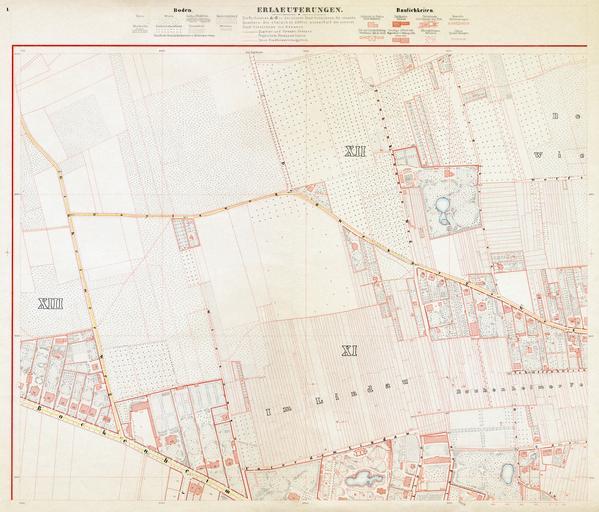 | Keywords: Frankfurt-Ravenstein1861-Bl1.jpg Ravenstein à bersicht Die neun Kartenblätter des vorgenannten Plans erschienen 1862 im Verlag des Geographischen Instituts zu Frankfurt am Main und sind der letzte große Plan der die Stadt noch völlig unberührt von den neuzeitlichen Straßendurchbrüchen darstellt; ausgenommen der Spindler-Plan von 1866 der jedoch nur fragmentarisch überliefert und somit unbrauchbar ist Was seinerzeit an Ravensteins Plan bemerkenswert war ist zum einen die Maßstabstreue die auf Grunlage eines mathematisch durchgerechneten Koordinatensystems erzielt wurde zum anderen die enorme Genauigkeit zeigt er doch jede einzelne Parzelle mit Hausnummer und benennt auch selbst kleinste Seitengassen Umso bemerkenswerter ist diese Leistung wenn man berücksichtigt dass der Plan noch größtenteils in Handarbeit und ohne moderne technische Hilfsmittel entstand Die Herstellung im chromolithograpischen Steindruckverfahren begründet zudem eine graphische Qualität die viele modernere Verfahren nie wieder erreicht haben Noch einige Worte zur Digitalisierung die heute bereits über 140 Jahre alten Pläne befanden sich zum Zeitpunkt der Digitalisierung August 2006 in einem bedauernswerten Zustand Die zeitgenössische Unsitte auf nicht säurefreiem Papier zu drucken hatte alle Blätter stark vergilben lassen eine unangemessene Lagerung der Pläne vermutlich während Kriegszeiten zu deren Schutz liess Feuchtigkeit in das Papier einziehen was wiederum zu Schimmelbildung in Form von teils starker Stockfleckigkeit führte Außerhalb industrieller Anwendungen fand sich weiter keine bezahlbare Möglichkeit der direkten Digitalsierung der etwas unter A2 großen Blätter Daher wurden diese jeweils in zwei Stücken mit einem A3-Scanner bei 600 DPI gescannt und anschließend mit einer für Fotopanoramen gedachten Software wieder zusammengefügt Anschließend erfolgten händische Retuschen aller Blätter ein digitales Entrauschen der sich aufgrund der hohen Auflösung zeigenden Papierstruktur und eine anschließende Farbkorrektur die einen Großteil der durch Vergilben verursachten Farbabweichungen beheben konnte Zuletzt wurden von den über 120 Megapixel großen Einzelblättern JPEGs mit 4000 Pixel Höhe gezogen da nur in dieser Auflösung eine Bildgröße um 5 MB gewährleistet ist; dies kann nur als Kompromiss gesehen werden da teilweise selbst bei Vollauflösung feinste Details wie Brunnen oder winzige Treppen in Hinterhöfen kaum erkennbar sind Bei Interesse an verlustlosen Originalen größeren Ausschnitten etc helfe ich http //de wikipedia org/wiki/Benutzer Doenertier82 natürlich jederzeit gerne aus Blatt 1 des Plans oben links Urheberrechtliche Ansprüche sind aufgrund des Alters erloschen PD-old August Ravensteins Geometrischer Plan von Frankfurt am Main A1 |