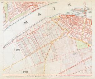 | Keywords: Frankfurt-Ravenstein1861-Bl8.jpg Ravenstein à bersicht Die neun Kartenblätter des vorgenannten Plans erschienen 1862 im Verlag des Geographischen Instituts zu Frankfurt am Main und sind der letzte große Plan der die Stadt noch völlig unberührt von den neuzeitlichen Straßendurchbrüchen darstellt; ausgenommen der Spindler-Plan von 1866 der jedoch nur fragmentarisch überliefert und somit unbrauchbar ist Was seinerzeit an Ravensteins Plan bemerkenswert war ist zum einen die Maßstabstreue die auf Grunlage eines mathematisch durchgerechneten Koordinatensystems erzielt wurde zum anderen die enorme Genauigkeit zeigt er doch jede einzelne Parzelle mit Hausnummer und benennt auch selbst kleinste Seitengassen Umso bemerkenswerter ist diese Leistung wenn man berücksichtigt dass der Plan noch größtenteils in Handarbeit und ohne moderne technische Hilfsmittel entstand Die Herstellung im chromolithograpischen Steindruckverfahren begründet zudem eine graphische Qualität die viele modernere Verfahren nie wieder erreicht haben Noch einige Worte zur Digitalisierung die heute bereits über 140 Jahre alten Pläne befanden sich zum Zeitpunkt der Digitalisierung August 2006 in einem bedauernswerten Zustand Die zeitgenössische Unsitte auf nicht säurefreiem Papier zu drucken hatte alle Blätter stark vergilben lassen eine unangemessene Lagerung der Pläne vermutlich während Kriegszeiten zu deren Schutz liess Feuchtigkeit in das Papier einziehen was wiederum zu Schimmelbildung in Form von teils starker Stockfleckigkeit führte Außerhalb industrieller Anwendungen fand sich weiter keine bezahlbare Möglichkeit der direkten Digitalsierung der etwas unter A2 großen Blätter Daher wurden diese jeweils in zwei Stücken mit einem A3-Scanner bei 600 DPI gescannt und anschließend mit einer für Fotopanoramen gedachten Software wieder zusammengefügt Anschließend erfolgten händische Retuschen aller Blätter ein digitales Entrauschen der sich aufgrund der hohen Auflösung zeigenden Papierstruktur und eine anschließende Farbkorrektur die einen Großteil der durch Vergilben verursachten Farbabweichungen beheben konnte Zuletzt wurden von den über 120 Megapixel großen Einzelblättern JPEGs mit 4000 Pixel Höhe gezogen da nur in dieser Auflösung eine Bildgröße um 5 MB gewährleistet ist; dies kann nur als Kompromiss gesehen werden da teilweise selbst bei Vollauflösung feinste Details wie Brunnen oder winzige Treppen in Hinterhöfen kaum erkennbar sind Bei Interesse an verlustlosen Originalen größeren Ausschnitten etc helfe ich http //de wikipedia org/wiki/Benutzer Doenertier82 natürlich jederzeit gerne aus Blatt 8 des Plans unten mittig Urheberrechtliche Ansprüche sind aufgrund des Alters erloschen PD-old August Ravensteins Geometrischer Plan von Frankfurt am Main C2 |