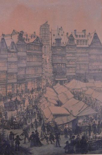 Keywords: Frankfurt Weihnachtsmarkt 1876.jpg Frankfurt am Main Germany The Christmas Market at the Römerberg Drawing by Peter Becker 1876 Frankfurt am Main Historisches Museum PD-Art Römerberg Frankfurter Weihnachtsmarkt Peter Becker Spire of Kaiserdom St Bartholomäus Großer und Kleiner Engel Kaiserdom St Bartholomäus in the 19th century Christmas 1876 Christmas markets in art 1876 in Frankfurt am Main 1876 drawings Artworks missing infobox template |