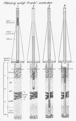 | Keywords: Franki-pålning Slussen.JPG sv Grundläggning vid Slussen i Stockholm medelst pålning enligt system Franki 2014-11-30 11 42 13 http //runeberg org/tektid/1936v/0123 html Carl Bjuke other versions cc-zero Uploaded with UploadWizard Architectural drawings from Slussen |