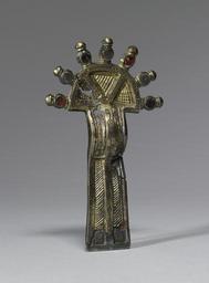 | Keywords: Frankish - Digitated Fibula - Walters 542443.jpg Bow fibulas are also called digitated fibulae due to the radiating knobs that resemble fingers or digits emerging from the headplate The knobs of early 4th-century fibulae were functional and held the springs of the pin At a later date as on this 6th-century example the knobs became purely decorative This fibula has seven knobs alternately inlaid with garnets or glass paste and concentric circles filled with niello a mixture of copper sulphur silver and lead While seven-knobbed fibulae are much less common than the five-knobbed types they are likewise found in northeastern France and the Rhineland They were worn in pairs at the shoulder or as belt ornaments by women with noble status in Frankish society century 6 Early Medieval gilt bronze with garnets or glass paste and niello cm 11 3 6 7 1 6 accession number 54 2443 1374 Carlebach Gallery New York date and mode of acquisition unknown Walters Art Museum 1959 by purchase Museum purchase with funds provided by the S A P Fund 1959 Jewelry - Ancient to Modern The Walters Art Gallery Baltimore 1979-1980 place of origin Rhineland Germany Walters Art Museum license Sösdala-Untersiebenbrunn style Medieval metalwork in the Walters Art Museum Jewellery in the Walters Art Museum Media contributed by the Walters Art Museum needs category review Fibulae with seven-finger grip Julius Carlebach 6th-century works |