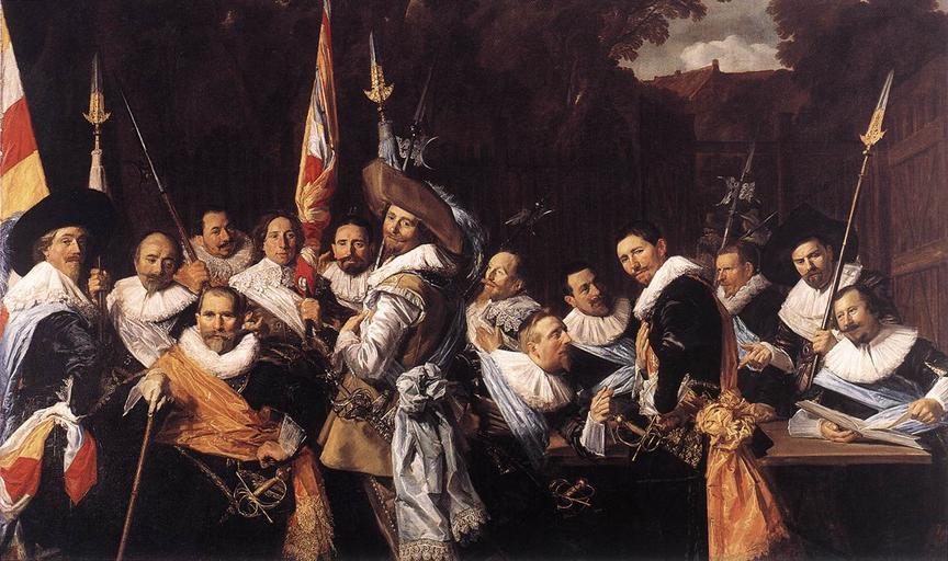| Keywords: Frans Hals - Officers and Sergeants of the St Hadrian Civic Guard - WGA11107.jpg ca 1633 Oil on canvas size cm 207 337 Institution Frans Halsmuseum Haarlem object history credit line accession number WGA link 11107 http //www wga hu/art/h/hals/frans/04-1633/37nohad jpg http //www wga hu/html/h/hals/frans/04-1633/37nohad html PD-old-100 painting portrait Dutch 1601-1650 Officers and sub-alterns of the Calivermen Civic Guard Haarlem 17th-century oil on canvas paintings 1633 paintings Portrait paintings of men wearing hats People with flags in art Ruffs in art Oil paintings of men Portrait paintings of men with books WGA form painting WGA type portrait WGA School Dutch WGA time period 1601-1650 |