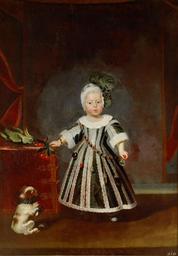 | Keywords: Frans Luycx - Archduke Karl Joseph with puppies and cockatoo at the age of about one and a half years.jpg Artwork Creator Frans Luycx ca 1651 oil canvas cm 138 5 97 5 Institution Kunsthistorisches Museum accession number GG_3185 object history Aus der kaiserlichen Hofburg in Wien; 1772 in der Galerie nachweisbar credit line 219 number lower right Abgebildete Person Erzherzog Karl Joseph Sohn des Ferdinand III von Habsburg Österreich http //bilddatenbank khm at/viewArtefact id 2403 PD-old-100 DEFAULTSORT 1651; Charles Joseph of Austria Paintings by Frans Luycx in the Kunsthistorisches Museum Portraits of children by Frans Luycx Archduke Charles Joseph of Austria 1650s paintings in Austria 17th-century oil portraits of boys at full length 17th-century portrait paintings in the Kunsthistorisches Museum Paintings of boys' dresses Portrait paintings of boys with dogs Portrait paintings of standing boys Portraits with fruits Tables in portrait paintings 1650s portrait paintings |