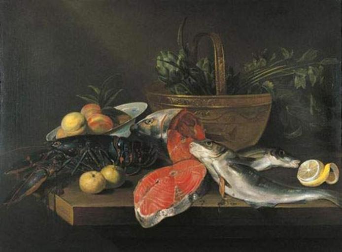 Keywords: Frans Ykens Still life with lobster, salmon, peeled lemon and fruits in a bowl and vegetables in a copper basket on a table.jpg en Still life with lobster salmon peeled lemon and fruits in a bowl and vegetables in a copper basket on a table by Frans Ykens oil on canvas 66 x 90 cm en Stilleben mit Hummer Lachs geschälter Zitrone und Früchten in einer Schale und Gemüse in einem Korb aus Kupfer auf einem Tisch von by Frans Ykens Öl auf Leinwand 66 x 90 cm century 17 http //www invaluable com Creator Frans Ykens PD-old-100 PD-old-100 Frans Ykens Still life paintings 17th-century still life paintings 17th-century still life paintings of food 17th-century still life paintings in Belgium Still life paintings of fish Still life paintings of seafood Still life paintings of food Baroque paintings in Belgium |