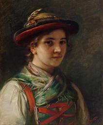 | Keywords: Franz von Defregger Brustbild einer jungen Tirolerin mit Hut.jpg Brustbild einer jungen Tirolerin mit Hut in rot oil on canvas 58 5 x 47 cm http //www zeller de Auktionshaus Zeller by 1921 Creator Franz von Defregger PD-old-70-1923 Images from Auktionshaus Zeller Franz von Defregger Tracht in art People of Tyrol |
