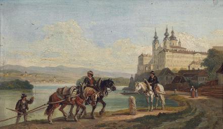 | Keywords: Franz Xaver Reinhold Blick auf Melk.jpg Blick auf Melk/Donau f Reinhold verso title/signature oil on wood 16 x 26 cm http //www dorotheum com by 1893 Creator Franz Xaver Reinhold PD-old-100 Images from Dorotheum Franz Xaver Reinhold Melk Abbey in art Paintings of Lower Austria Paintings of the Danube Towing in art 19th-century oil on panel paintings |