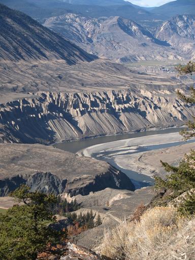 Keywords: bc bridge british columbia canada chilcotin-bella coola highway environmental forest fraser river highway hills mountains river scenery shores stones trees valley water