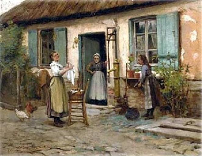 Keywords: Fred Millard - Washing Day.jpg Washing Day oil on canvas - 50cm x 57cm Frederick Millard photographical reproduction in the public domain PD-Art Frederick Millard