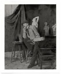 | Keywords: smithsonian institution smithsonianinstitution frederick carl gottwald frederickcarlgottwald artist posed worker clay sculptor gottwald palette seated canvas hat curtain painter palatte brushes archives of american art archivesofamericanart monochrome blackandwhite black and white Description: Copyprint of Gottwald seated, holding palette and brushes. Photographer unknown. Gottwald, F. C. Frederick Carl, 1858-1941 -- Photographs Creator/Photographer: Unidentified photographer Medium: Black and white photographic print Dimensions: 26 cm x 21 cm Date: c. 1898 Persistent URL: photography.si.edu/SearchImage.aspx?id=5226 Repository: Archives of American Art Accession number: aaa_miscphot_5664 Description: Copyprint of Gottwald seated, holding palette and brushes. Photographer unknown. Gottwald, F. C. Frederick Carl, 1858-1941 -- Photographs Creator/Photographer: Unidentified photographer Medium: Black and white photographic print Dimensions: 26 cm x 21 cm Date: c. 1898 Persistent URL: photography.si.edu/SearchImage.aspx?id=5226 Repository: Archives of American Art Accession number: aaa_miscphot_5664 |