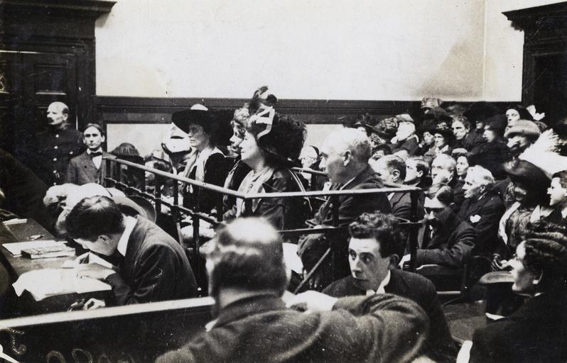 Keywords: the women's library thewomenslibrary women suffrage politics court trial bow street bowstreet frederick pethick lawrence frederickpethicklawrence emmeline pethick lawrence emmelinepethicklawrence emmeline pankhurst emmelinepankhurst mabel tuke mabeltuke hires indoor 7JCC/O/02/062 Photograph, printed, paper, monochrome, Frederick Pethick Lawrence, Emmeline Pethick Lawrence,, Emmeline Pankhurst and [Mabel Tuke] in the dock at Bow Street; printed inscription on reverse 'This photograph is the copyright of the Illustrations Bureau, 12 Whitefriars St, London EC, and must not be reproduced without permission' 7JCC/O/02/062 Photograph, printed, paper, monochrome, Frederick Pethick Lawrence, Emmeline Pethick Lawrence,, Emmeline Pankhurst and [Mabel Tuke] in the dock at Bow Street; printed inscription on reverse 'This photograph is the copyright of the Illustrations Bureau, 12 Whitefriars St, London EC, and must not be reproduced without permission' |