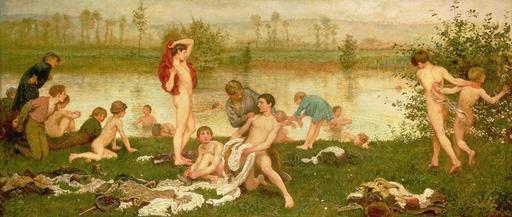 | Keywords: Frederick Walker - The Bathers (1866–67).jpg Artwork Creator Frederick Walker The Bathers 1866 “1867 Oil on canvas cm 92 7 214 7 Institution Lady Lever Art Gallery accession number LL 3143 http //www bbc co uk/arts/yourpaintings/paintings/the-bathers-102702 BBC Your paintings object history provenanceEvent transfer 1922 Lord Leverhulme's private collection credit line 203785 PD-old-100-1923 1875 Frederick Walker Paintings in the Lady Lever Art Gallery Bathing children in art Paintings of nude boys 1860s paintings |
