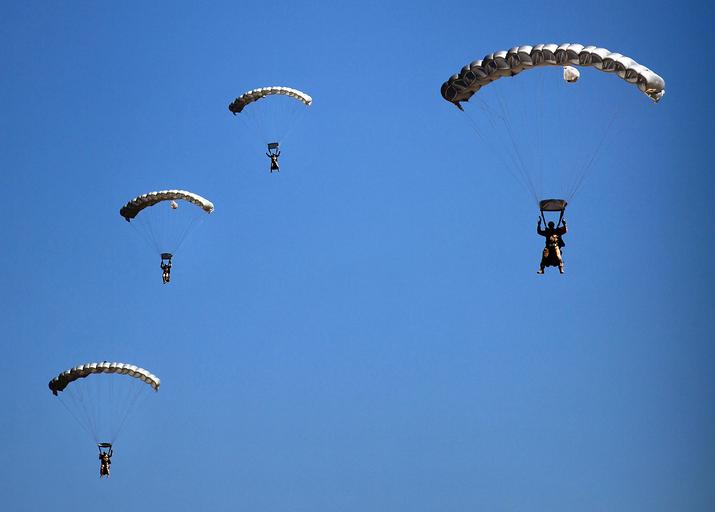 Keywords: Free-Fall into Spain (9617818202).jpg Reconnaissance Marines with Special Purpose Marine Air-Ground Task Force Crisis Response and paratroopers with the Spanish army descend to their objective at Naval Air Station Rota Spain Aug 13 2013 after jumping from an MV-22 Osprey during Exercise Bronze Sword 13 1 Bronze Sword was a joint bilateral military free-fall exercise between U S and Spanish forces which increased military free-fall proficiency and currency SP-MAGTF Crisis Response is a self-mobile and self-sustaining force whose mission is to respond across a full range of military operations to protect both U S and partner-nation security interests in the region as well as strengthening partnerships throughout the U S European Command and U S Africa Command area of responsibility U S Marine Corps photo by Cpl Michael Petersheim/Released https //www flickr com/photos/marine_corps/9617818202/ Free-Fall into Spain 2013-08-13 11 53 https //www flickr com/people/40927340 N03 Marines from Arlington VA United States PD-USGov United States Marine Corps Official Page https //flickr com/photos/40927340 N03/9617818202 2016-09-03 22 11 35 United States Government Work Blue Down Free fall Up Amphibious forces Parachutes |